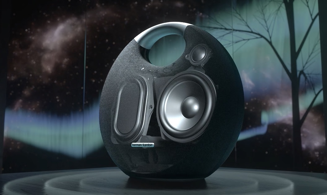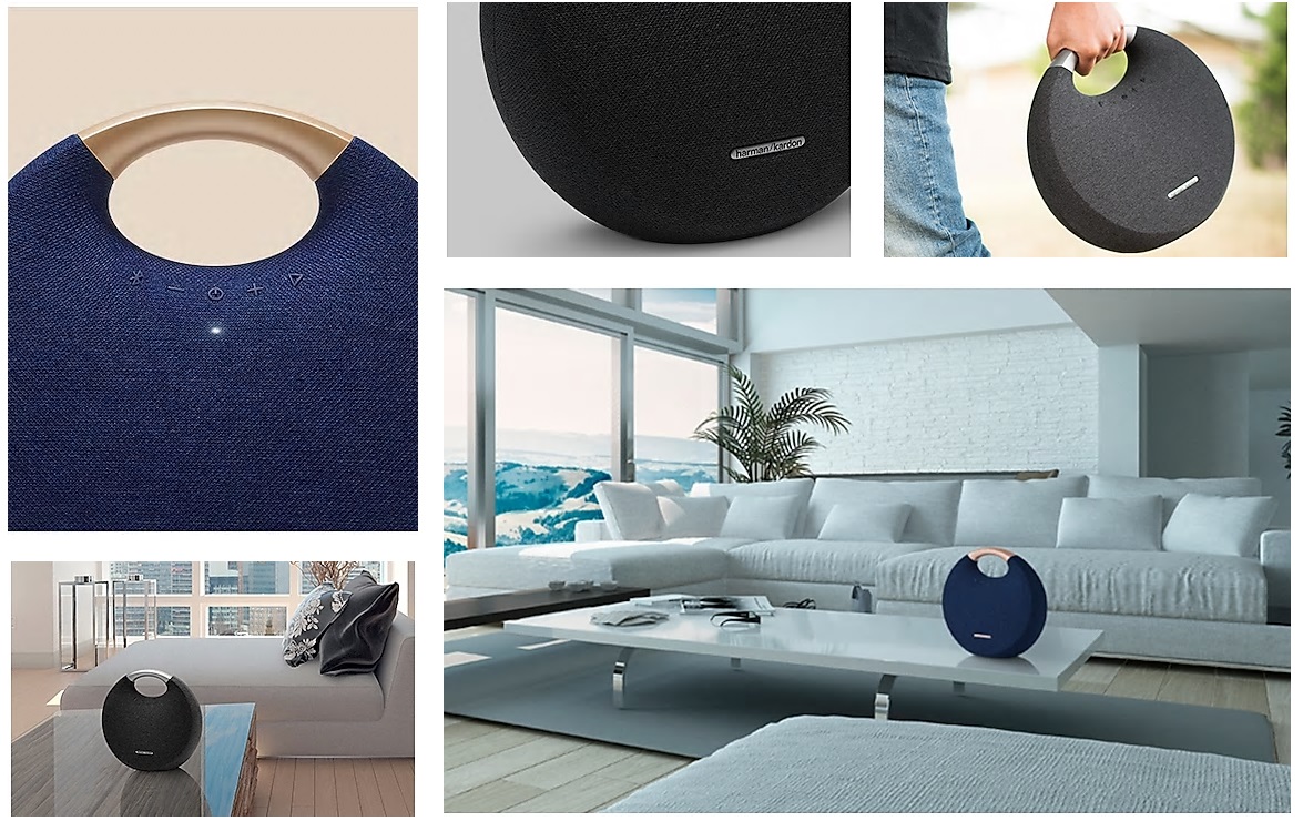 모델넘버는 HKOS5BLKAS, 이동이 간편한 라운드 디자인,고급스러운 라운드 실루엣에 알루미늄 손잡이를 더해 이동이 편리합니다.슬림한 두께 덕분에 공간의 제약 없이 풍부한 사운드를 즐길 수 있습니다.