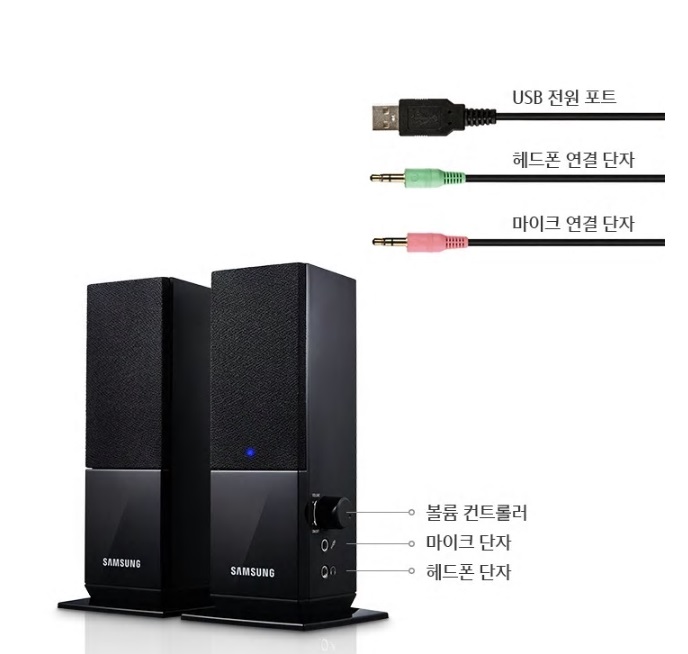 사용자 편의를 위한 연결 방식,사용자 편의를 위한 연결 방식으로 헤드셋, 마이크, 헤드폰을 연결해 사용할 수 있도록 우측 스피커 측면부에 단자가 탑재되어 있습니다. 별도 콘센트 전원 없이도 전원 USB 방식으로 사용이 가능하며, 데스크탑 뿐만 아니라 노트북 등에 저전력 사용이 가능해 높은 효율성으로 사용자 편의를 돕습니다. 규격은 외관 (가로x높이x깊이) 75*75*175mm 입니다. 그리고 중량은 520g 색상은 블랙, 슬림한 바디에 시크한 블랙 타워스타일, USB전원으로 사용 편리합니다. USB전원+3.5mm MIC,HEADPHONE 오디오플러그 지원합니다.