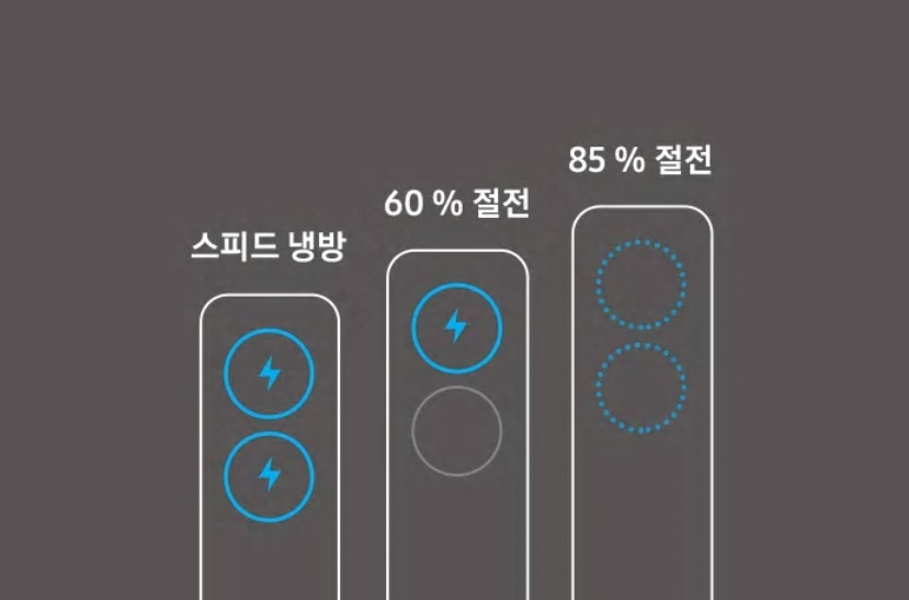 초절전 바람문 컨트롤, 상황에 따라 2구, 1구, 무풍으로 바람문 조절이 가능한 초절전 바람문 컨트롤로 최대 85 %까지
