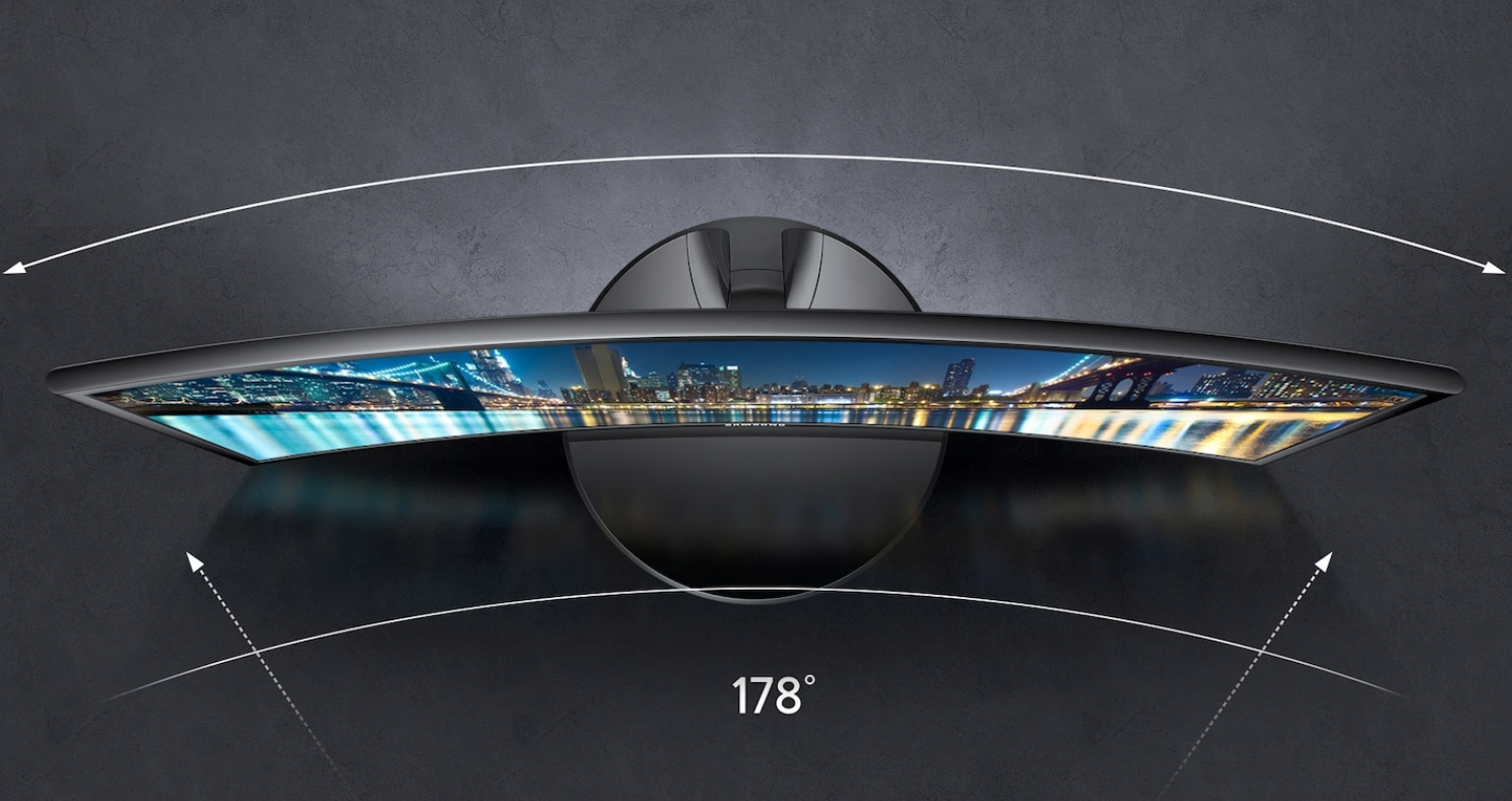 풍부한 표현력, 3000:1 정적 명암비, 삼성 커브드 모니터가 구현한 최적의 화면 곡률 1800R은 눈으로 보는 화면의 중심과 가장자리의 거리 차이를 최소화하여 더 넓고 깊은 파노라마 효과를 경험할 수 있습니다. 커브드 화면은 우리의 눈이 바라보는 자연스러운 시야각과 일치하도록 구성되어 더 편안한 화면을 제공할 뿐만 아니라 눈과 목의 피로를 줄여 줍니다.
