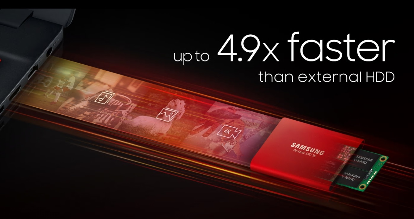 본 제품은 빠른 전송 속도, 4K 비디오, 영화, 고사양 게임 및 기타 대용량 파일들을 신속하게 전송 및 백업할 수 있습니다. T5는 또한 클라우드 스토리지보다 더 빠른 속도와 강력한 보안을 자랑합니다. 그리고 Samsung V-NAND 플래시 메모리와 USB 3.1 Gen 2 인터페이스로 HDD보다 4.9배 빠른 속도인 최대 540 MB/s 속도로 데이터 전송합니다.