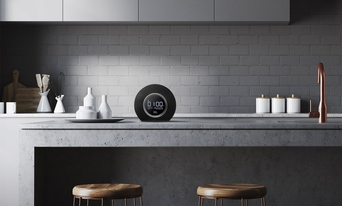 밤에도 아름다운 스피커 둥근 디자인의 가운데 LCD 디스플레이를 장착해 날짜와 시계를 확인할 수 있습니다. 또 뒷면에 링 형상의 LED 라이트가 어두운 공간을 은은하게 밝혀줍니다.
