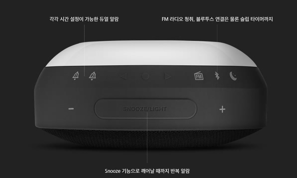 아침을 여는 아름다운 사운드 FM 라디오, 두 개의 알람 시간 설정과 다양한 알람 사운드 선택이 가능한 Horizon으로 아침을 상쾌하게 시작해보세요.