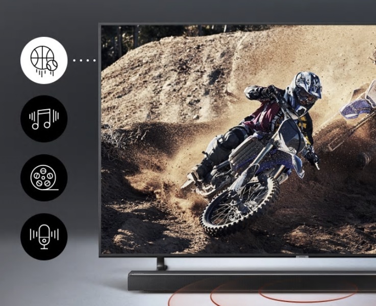 다양한 콘텐츠에 최적화된 사운드 스스로 음향을 분석하는 스마트 사운드 기술이 콘텐츠에 최적화된 음장효과로 자동 전환해줍니다. 드라마나 음악, 스포츠 경기 등 콘텐츠 특성에 맞게 각각 다른 사운드를 즐길 수 있습니다.