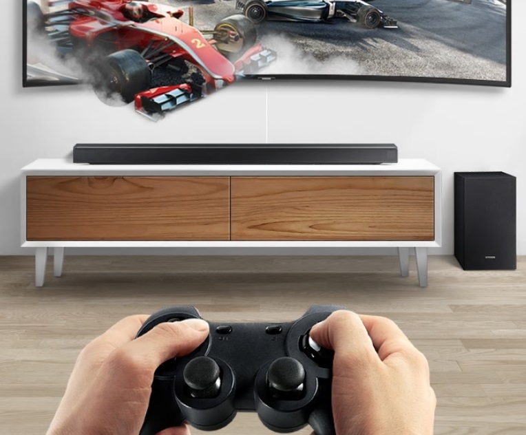 게임을 승리로 이끄는 사운드 TV에 콘솔 게임기가 연결되면 별도의 설정 없이 게임 모드로 자동 전환됩니다. 박진감 넘치는 사운드로 게임을 더욱 흥미진진하게 즐길 수 있습니다.