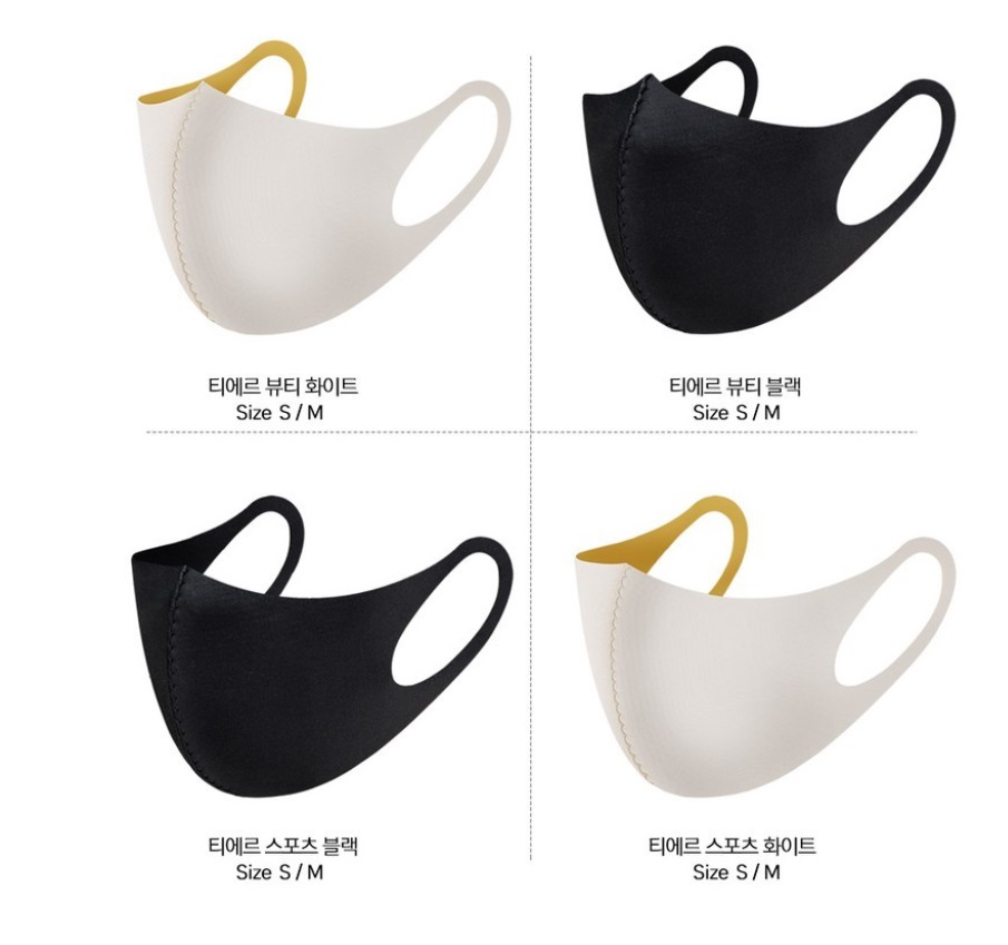 티에르 패션 마스크 제품 종류 뷰티와 스포츠 두가지 버전으로 상황에 맞게 이용하실 수 있습니다. 최적화된 비율로 디자인된 티에르 마스크는 착용시 얼굴라인 작고, 정돈되게 보여지게 합니다. 두가지 사이즈와 두가지 디자인, 얼굴형에 맞춰 선택할 수 있어, 어는 각도에서도 완벽한 핏을 만들어 줍니다. 뷰티 버전은 김서림 보완으로 안경을 착용하시는 분들에게 추천드립니다.