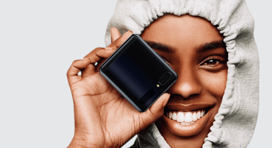 스마트폰의 홀로서기, 갤럭시 Z 플립은 원하는 각도로 접을 수 있습니다. 프리스탑 기능 덕분이죠. 평평한 곳이면 어디든 세워둘 수 있으니까 영상 통화할 때도 사진을 찍을 때도 정말 편리합니다.
