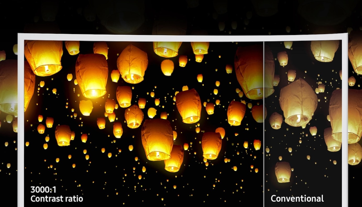 풍부한 표현력, 3000:1 정적 명암비, 삼성 커브드 모니터가 구현한 최적의 화면 곡률 1800R은 눈으로 보는 화면의 중심과 가장자리의 거리 차이를 최소화하여 더 넓고 깊은 파노라마 효과를 경험할 수 있습니다. 그리고 커브드 화면은 우리의 눈이 바라보는 자연스러운 시야각과 일치하도록 구성되어 더 편안한 화면을 제공할 뿐만 아니라 눈과 목의 피로를 줄여 줍니다.