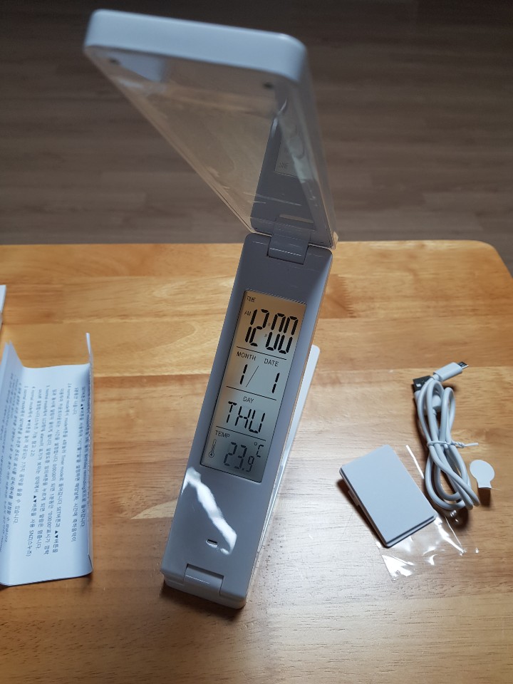 전자달력과 알람 온도계기능등 생활에 꼭 필요한 정보을 담겨져 있는 제품 입니다. 야간 산행, 캠핑과 낚시 다양한 여가 활동 및 독서실 등에서 정말 유용한 기능들입니다. 그리고 무엇 보다도 1000mah 내장형 배터리가 맘에 듭니다. 한번 충전으로 오랫 동안 사용가능합니다. 무엇보다도 달력, 시계. 알람에 사용되는 전원은 수은 전지를 따로 사용하는 센스 있는 디자인, 맘에 쏙 듭니다. LED 충전 배터리가 소모되어도 리셋되지 않습니다.