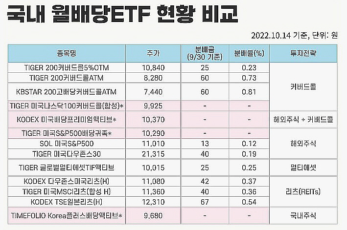 아래의 이미지는 국내 월배당 ETF 리스 입니다. 참고 하십시오.